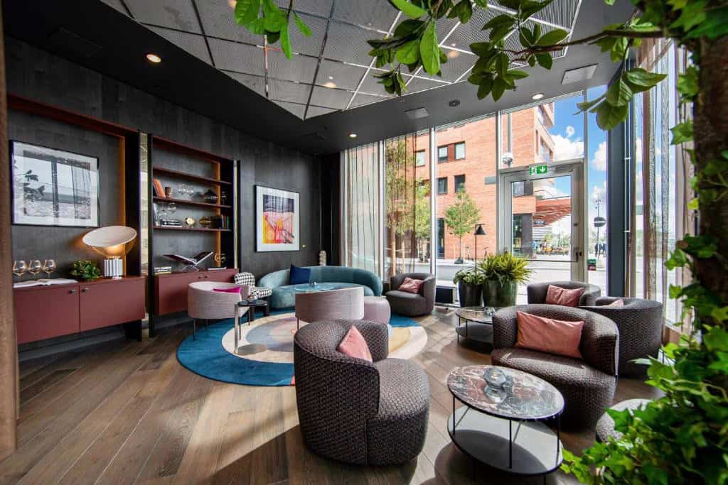 You’ll see it from the station — Oslo’s tallest hotel. Inside it’s modern and calm, with huge windows framing the Barcode district and Akerselva River walk.