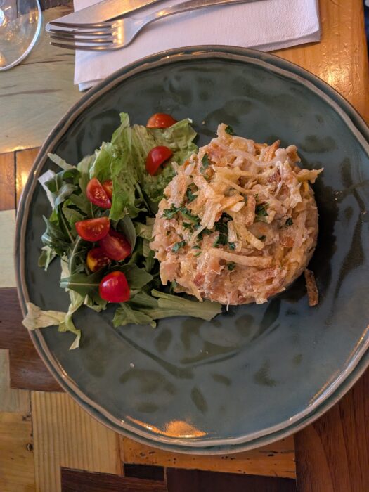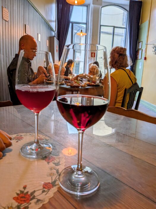 This is also where I tried green wine (Vinho Verde) for the first time. Despite the name, it is not actually green – it looks like regular white wine. “Green” refers to young wine from the Vinho Verde DOC region in northern Portugal, not a specific grape variety. I became slightly obsessed with green wine after this meal.