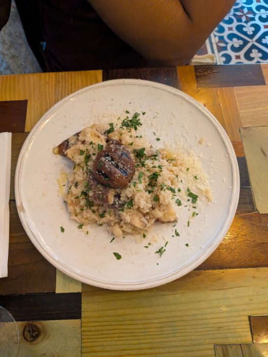 What I ordered: My partner got the mushroom risotto. It was legitimately excellent – not just good for a vegetarian option, but good period. I had the Bacalhau (salt cod), which is Porto’s signature dish. Done perfectly.