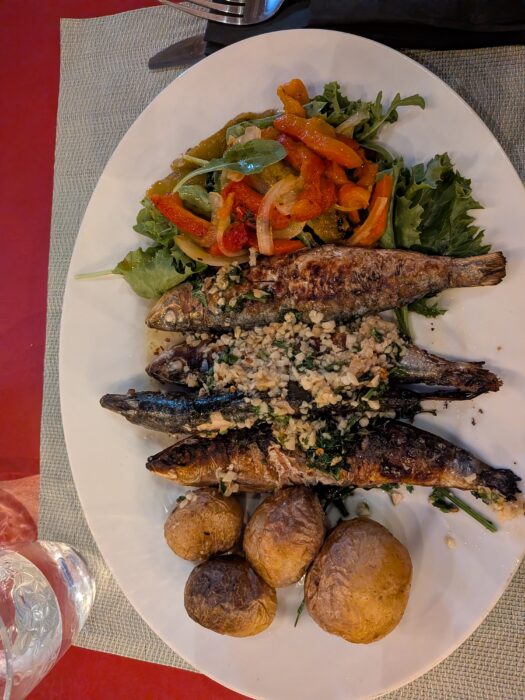 What I ordered: Sardines and traditional Portuguese flan for dessert. The sardines were excellent – fresh, perfectly cooked, hit the spot. But the flan was the highlight.