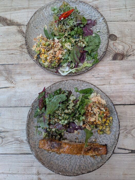 - Honest Greens: Has salmon plus excellent vegetarian/vegan options.