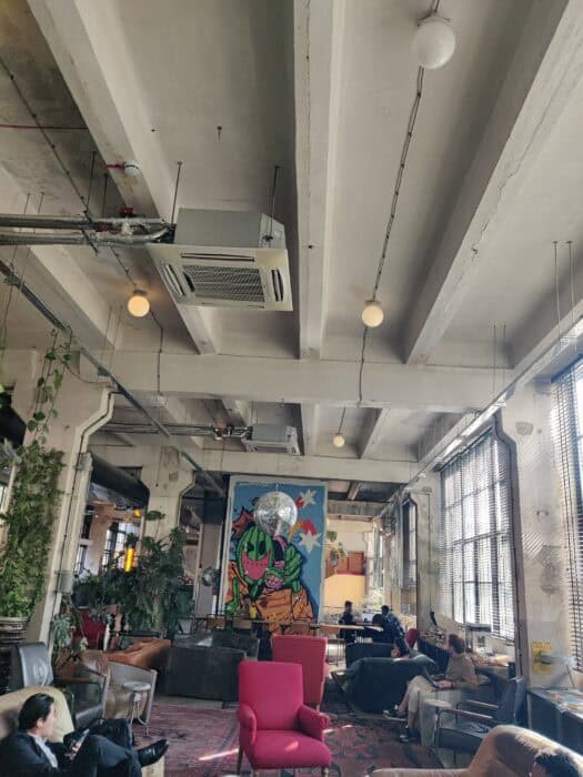 The vibe is amazing in the evening and at lunchtime when the restaurants open and people spill over into the front courtyard area. The common lounge area and outside hub is perfect for lounging for a couple of hours, yet quiet enough to get some work done.