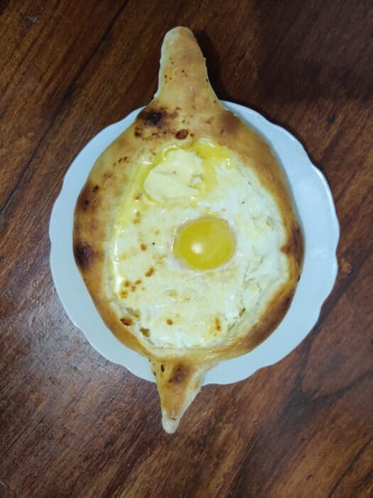 - Khachapuri (cheese bread) – Try the Adjarian style (boat-shaped with egg and butter) or Imeretian (round and flat)