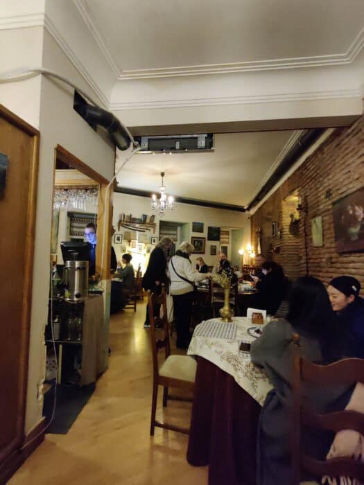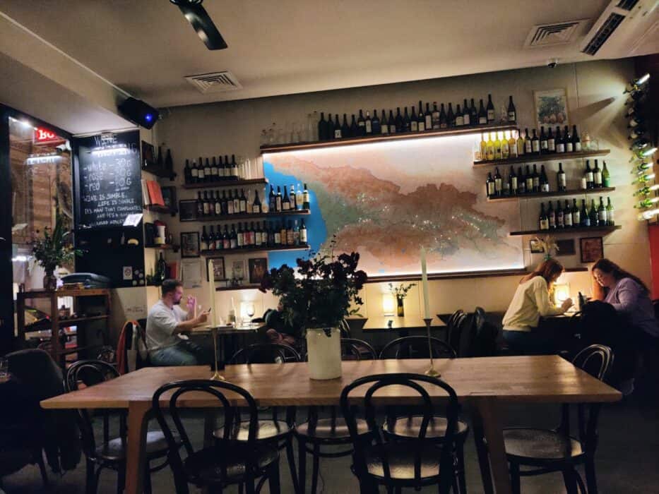 Mafshalia is super cheap for local homemade Georgian food and has a cult-like following. It is always busy and hard to book, so go early. They have tiny cubicle rooms on the side, so try to get a table in these as they are really good for groups or when you want your own space.