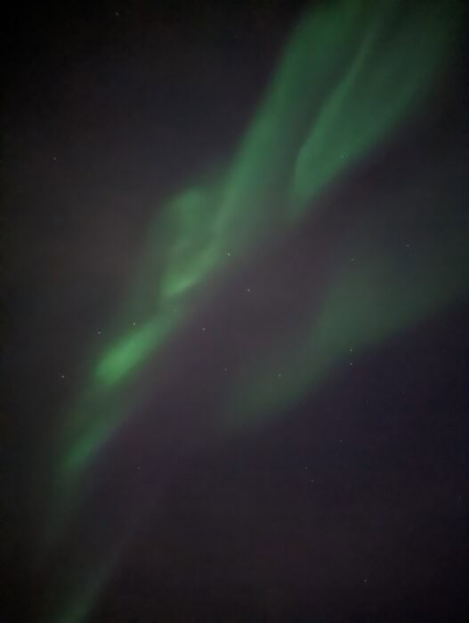 I cannot describe how it feels to see them in person. Photos do not do them justice. They move. They dance. They shift from faint green to vibrant streaks across the entire sky. We stood there for over an hour, cameras out, just watching.