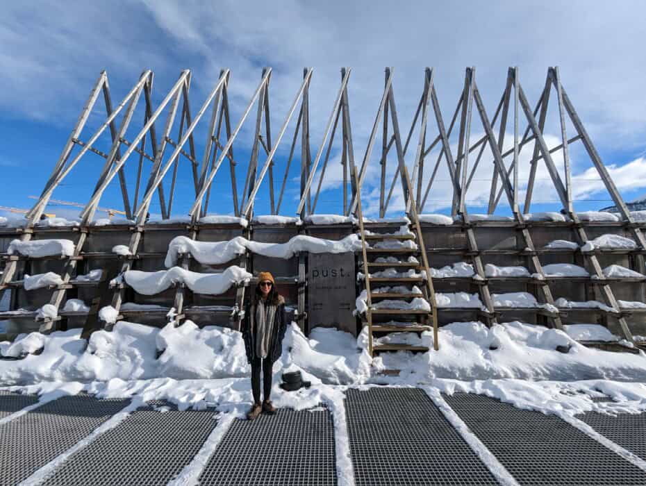 After a late start (we slept in after the midnight Northern Lights return), I headed to the Pust Sauna experience. I booked the 9am slot to avoid crowds – this is a shared sauna experience with up to 16 people per hour.