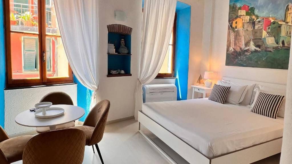 If you want to stay right in the centre without sacrificing comfort, Santa Marta Rooms is a safe bet. The building is old, but the interiors feel fresh with air-con, good soundproofing, and private bathrooms — things you’ll appreciate after a day in the village. A couple of rooms have balconies for morning coffee above the lanes, and the hosts, Alessandro and Francesca, are genuinely hands-on, pointing out where to eat or how to avoid trail bottlenecks.
